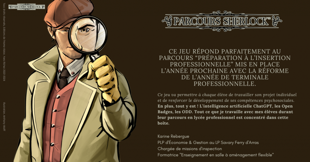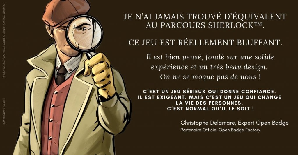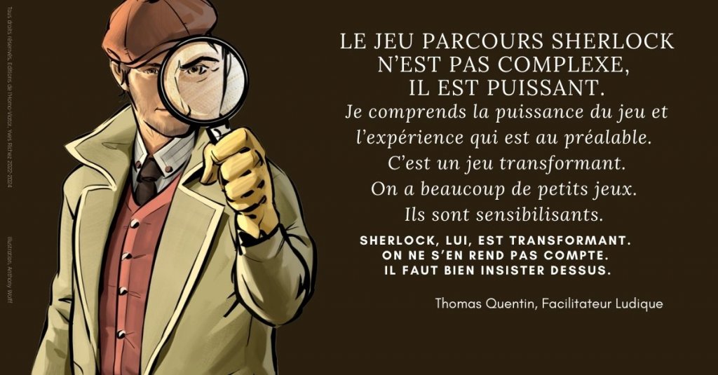 Avec Parcours Sherlock™, j’ai imaginé un parcours complet où chacun, chacune puisse par et dans l’expérience, acquérir de nouvelles connaissances solides et durables ; mais surtout, qu’ils expérimentent ce que les mots coopération, collaboration, émulation, pacification signifient en situation. Dans ce « jeu sérieux », c’est en aidant, en soutenant, en inspirant les autres que chaque personne réussit personnellement.