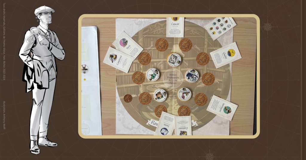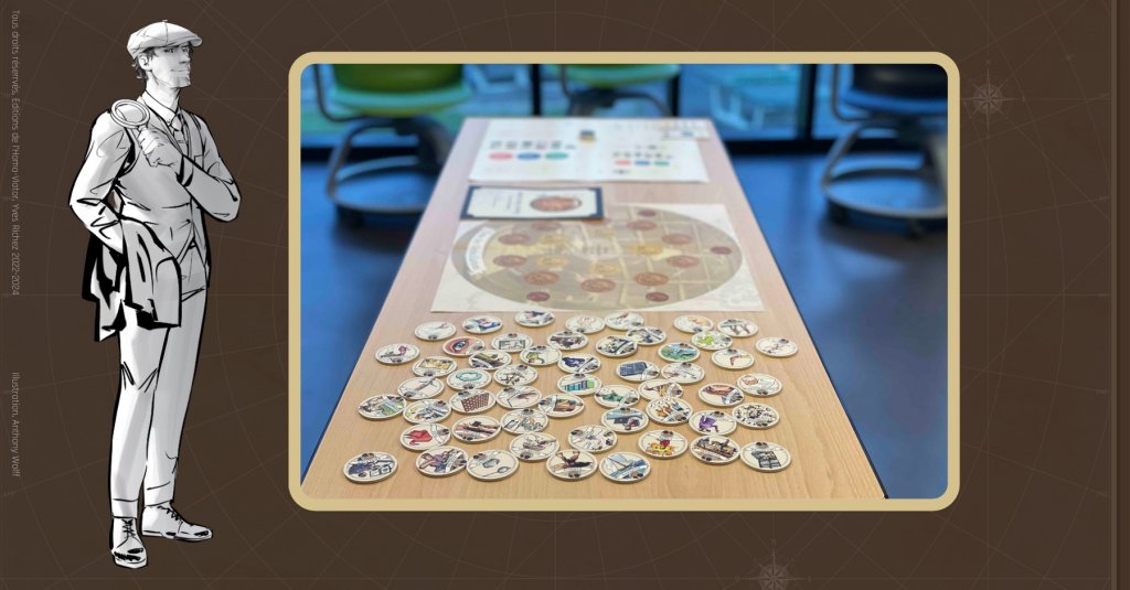 La Roue des Verbes d'action est l'un des cinq plateaux du Serious Game. Il est utilisé en Étape 2, Le Mystère de l'Ornithorynque. Dans notre cas, la Roue a été utilisée séparément pour entraîner et sensibiliser les professionnels à objectiver un métier.