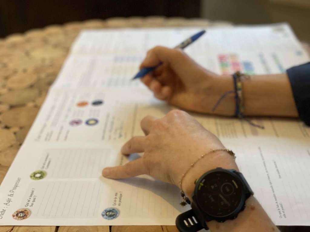 Le groupe collabore pour aider chacun, chacune à documenter sa Roue. Ils peuvent documenter un talent, un métier, une profession, une activité.